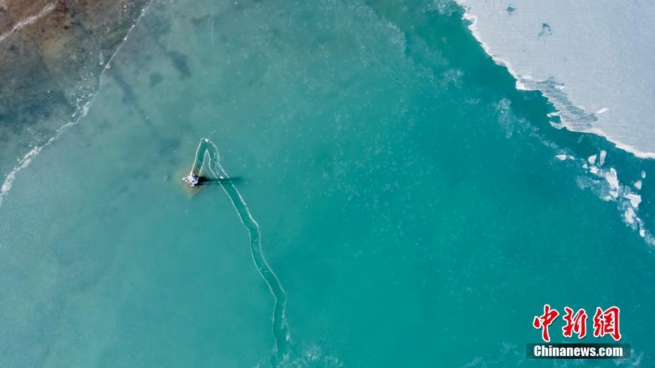 12月21日,航拍冬日青海湖。冬日青海湖周?chē)姆e雪將湛藍(lán)的湖面包裹起來(lái),不斷上凍的湖面猶如一面鏡子。(無(wú)人機(jī)照片) 中新社記者 李江寧 攝