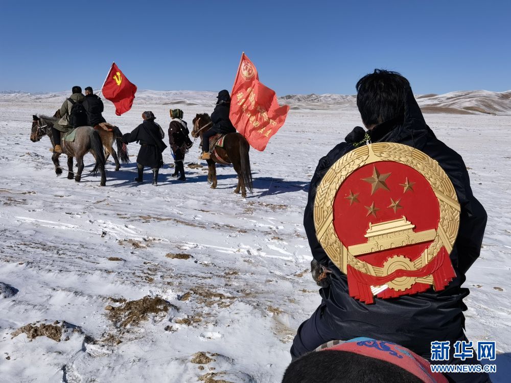 12月20日,青海省果洛藏族自治州瑪多縣人民法院的“馬背法庭”成員在下鄉(xiāng)途中。新華社記者 柳澤興 攝