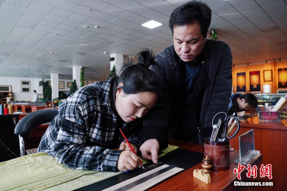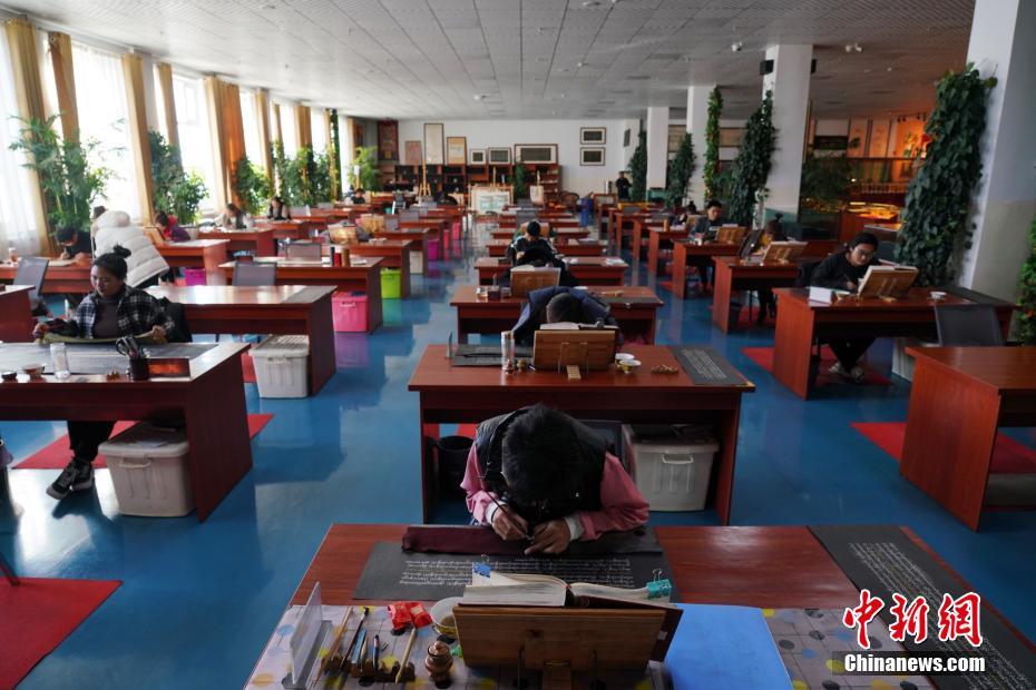 1月18日,青海省黃南藏族自治州尖扎縣非物質(zhì)文化遺產(chǎn)綜合傳習(xí)中心內(nèi),學(xué)員們正在抄寫經(jīng)文。該中心現(xiàn)有50名學(xué)員學(xué)習(xí)藏文書寫、唐卡繪制、藏紙手工制作技藝等。他們在學(xué)習(xí)、了解豐富多彩的藏族文化知識外,每年還可增收近5萬元人民幣。中新社記者 馬銘言 攝