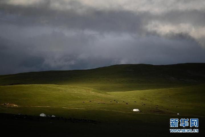 2021年8月3日,在青海省果洛藏族自治州瑪沁縣當洛鄉(xiāng)貢龍村拍攝的夏季草場。新華社記者 張龍 攝
