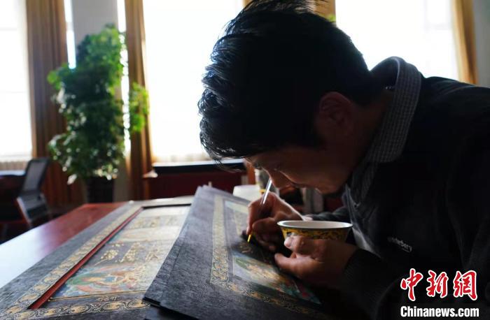 才讓多杰介紹,除了金汁書寫金書技藝外,還舉辦了藏紙加工制作、金子燒制打磨、藏文竹筆制作、金汁書寫金書和繪制唐卡專業(yè)培訓班,挖掘和吸收更多的民間手工藝人。