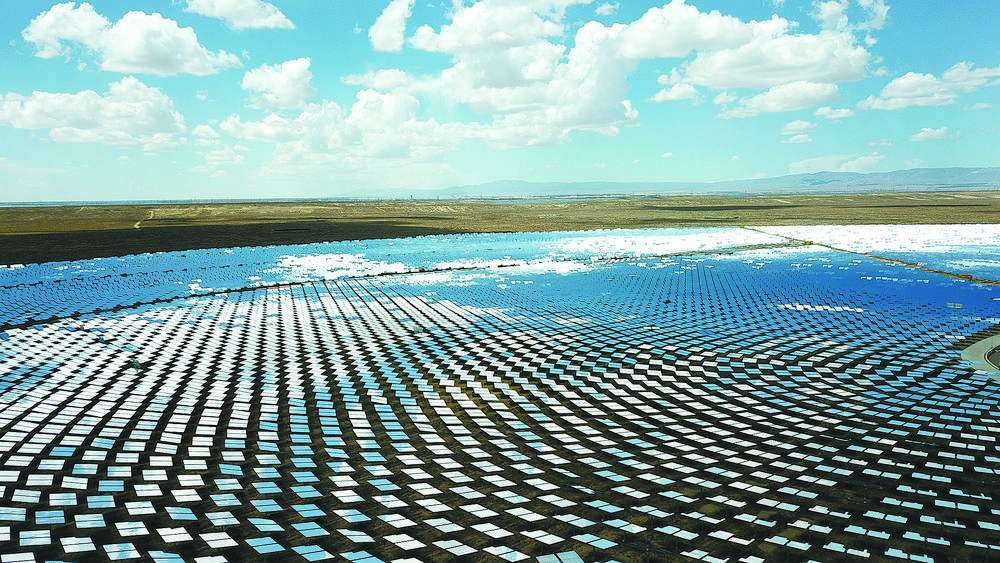一排排光伏發(fā)電板一望無際,猶如一片藍(lán)色海洋,矗立其中的一座座輸電鐵塔,像藍(lán)色大海上的風(fēng)帆……如今,新能源產(chǎn)業(yè)占比已到海南州工業(yè)經(jīng)濟的一半以上,爭當(dāng)“綠色經(jīng)濟”排頭兵的道路上疾步前行的海南正在實現(xiàn)生態(tài)效益和經(jīng)濟效益“雙贏”。