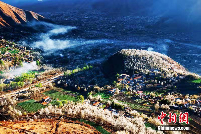 沙耳鄉(xiāng)共有雪梨1721畝、60251株,陽春三月梨花盛放,萬株梨樹與周邊咯爾鄉(xiāng)、慶寧鄉(xiāng)、勒烏鎮(zhèn)的雪梨林緊密相連,沿河谷一帶延伸成潔白的哈達(dá)點(diǎn)綴兩岸青山;秋高氣爽,又似火紅的夕陽余暉散落成一片片嫣紅,裝扮著金川大地。春季花艷、秋紅遍山形成了獨(dú)一無二的生態(tài)景觀資源,“綠水青山”成了該縣拓展全域旅游的“金山銀山”。