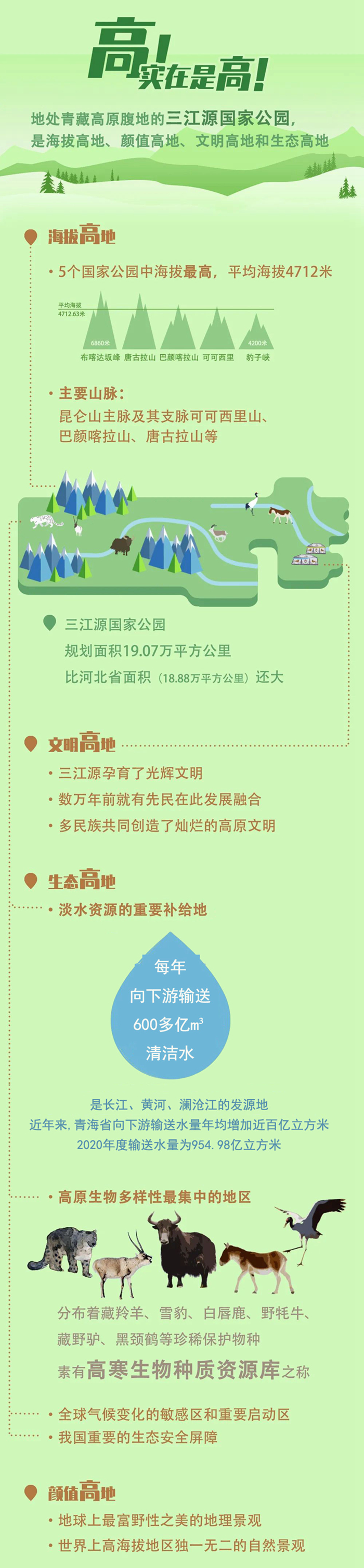 2021年6月,習(xí)近平總書記赴青海考察時強調(diào),保護好青海生態(tài)環(huán)境,是“國之大者”。要牢固樹立綠水青山就是金山銀山理念,切實保護好地球第三極生態(tài)。要把三江源保護作為青海生態(tài)文明建設(shè)的重中之重,承擔(dān)好維護生態(tài)安全、保護三江源、保護“中華水塔”的重大使命。要繼續(xù)推進國家公園建設(shè),理順管理體制,創(chuàng)新運行機制,加強監(jiān)督管理,強化政策支持,探索更多可復(fù)制可推廣經(jīng)驗。