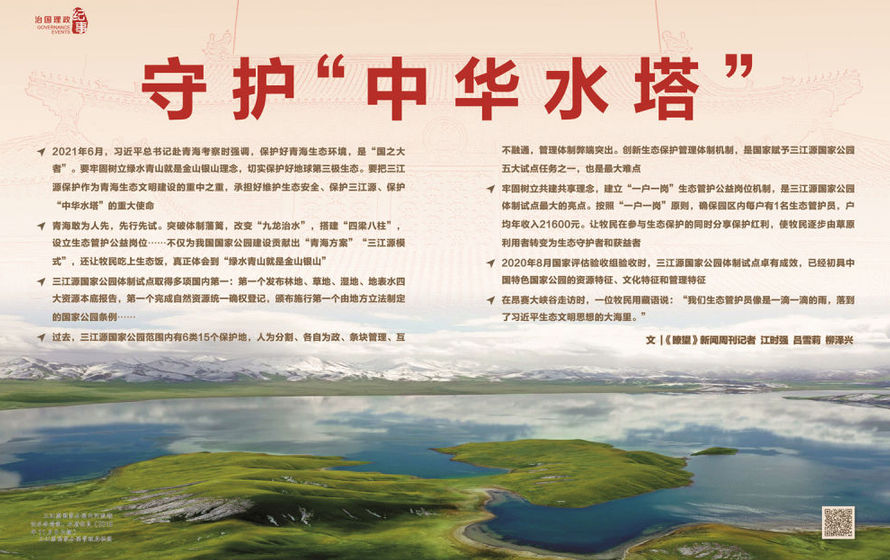 ◆ 2021年6月,習(xí)近平總書記赴青??疾鞎r強調(diào),保護好青海生態(tài)環(huán)境,是“國之大者”。要牢固樹立綠水青山就是金山銀山理念,切實保護好地球第三極生態(tài)。要把三江源保護作為青海生態(tài)文明建設(shè)的重中之重,承擔(dān)好維護生態(tài)安全、保護三江源、保護“中華水塔”的重大使命