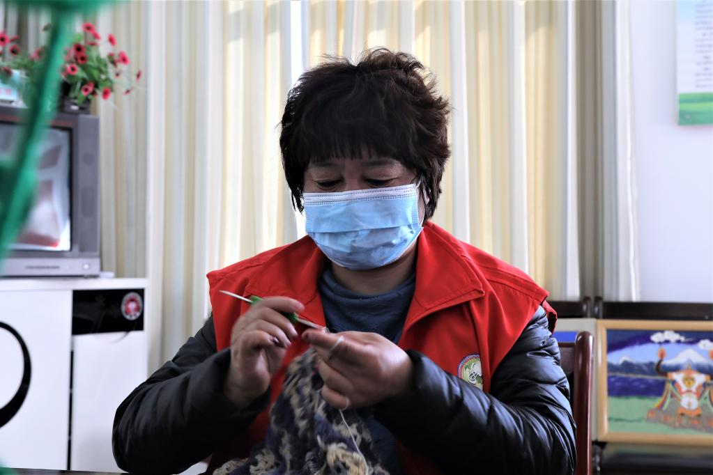在社區(qū)“石榴籽家園”里,各民族婦女利用閑暇時間學(xué)習(xí)鉤織、掐絲唐卡、十字繡等技藝。藏族婦女茍曉紅說:“我們制作的抱枕、坐墊、裝飾畫等手工藝品在線上線下銷售,讓我們在家門口掙到了錢。”