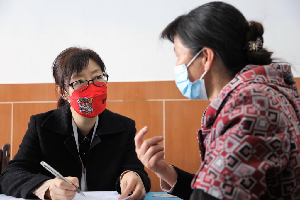 3月9日,評估機(jī)構(gòu)工作人員袁國芬(左)在社區(qū)“石榴籽家園”開展老年人能力綜合評估工作。新華社記者 趙玉和 攝