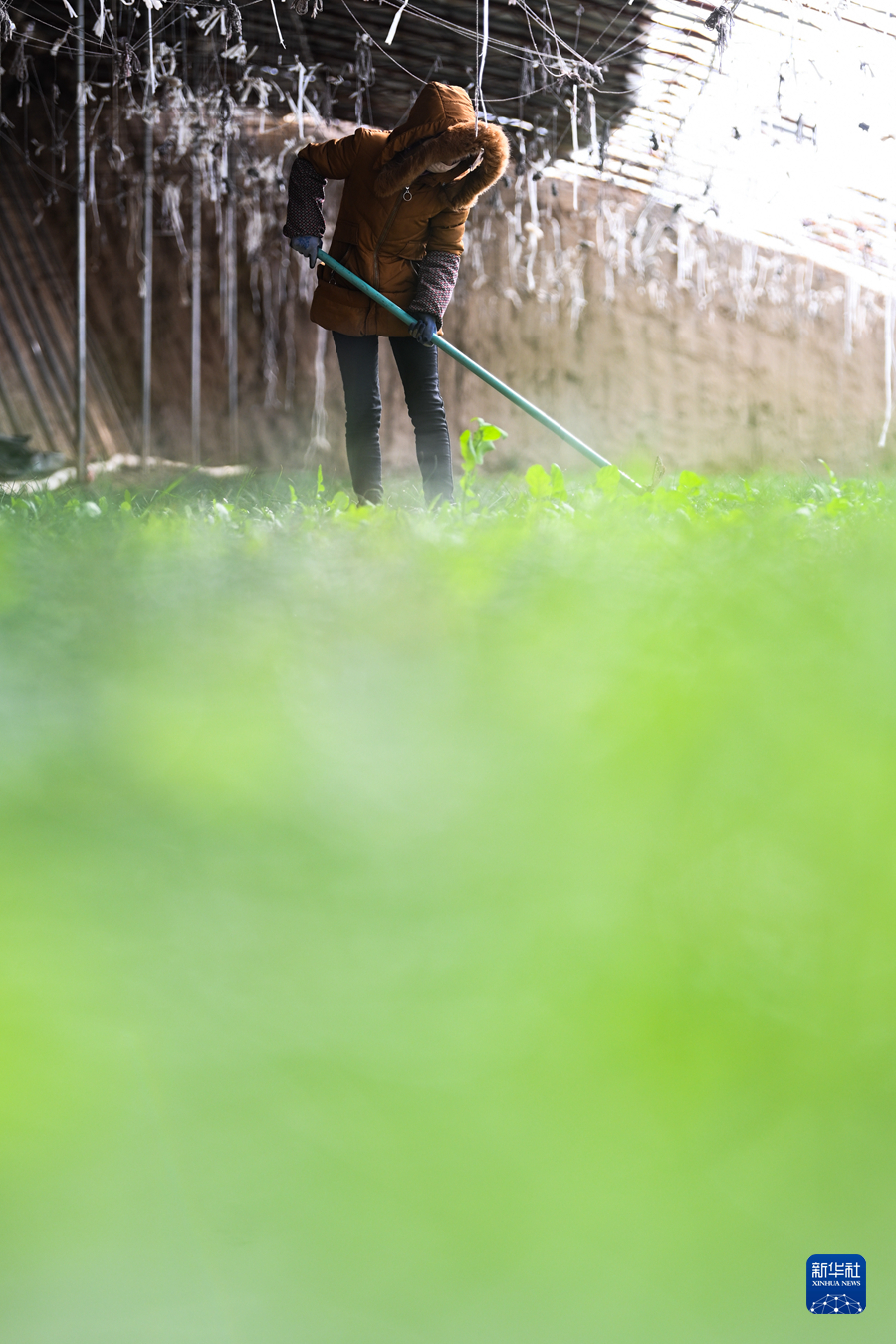 3月23日,藥農(nóng)在青海省海西蒙古族藏族自治州德令哈市柯魯柯鎮(zhèn)的藏紅花大棚內(nèi)除草。新華社記者 王浡 攝
