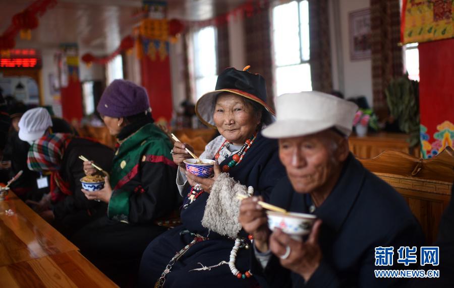 圖為敬老院老人吃早餐“糌粑”。馬銘言 攝
