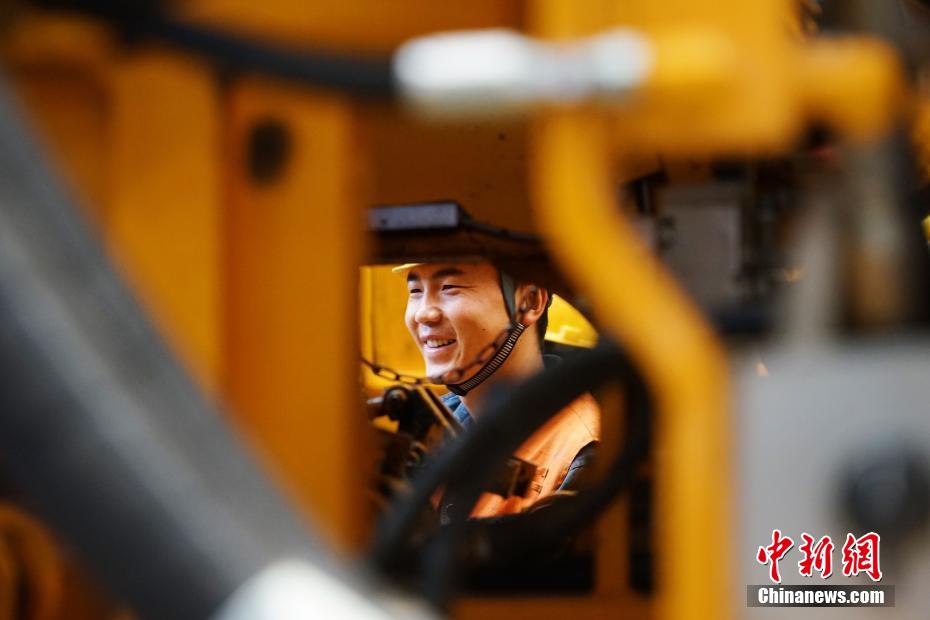 圖為一位檢修大型養(yǎng)路機的職工。馬銘言 攝