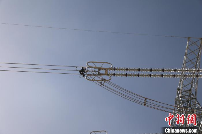圖為國網(wǎng)青海超高壓公司輸電專業(yè)人員正在開展750千伏青塔I線14號鐵塔消缺工作?!《瓚c芳 攝