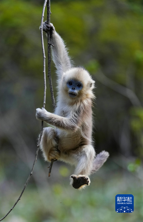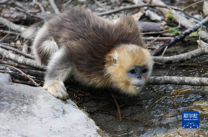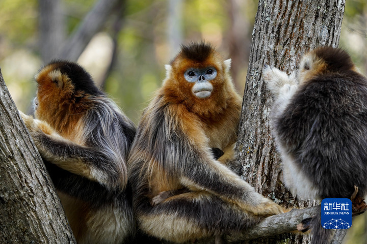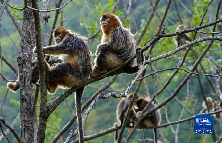 這是4月26日在四川白河國(guó)家級(jí)自然保護(hù)區(qū)里拍攝的川金絲猴。新華社記者 江宏景 攝