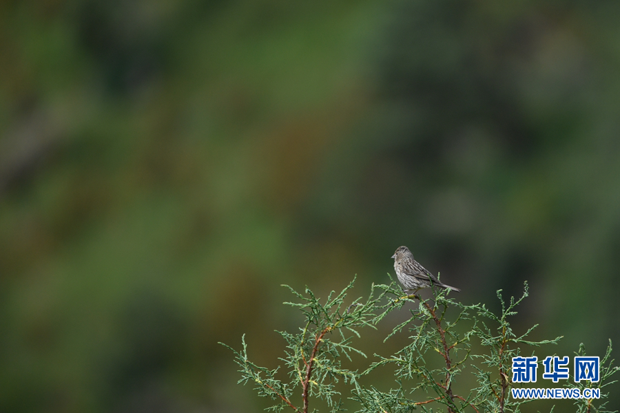 在青海省玉樹藏族自治州囊謙縣境內(nèi)拍攝到的曙紅朱雀(雌)。