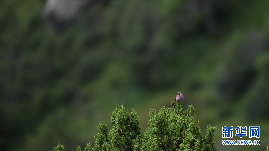 在青海省玉樹藏族自治州囊謙縣境內(nèi)拍攝到的曙紅朱雀(雄)。