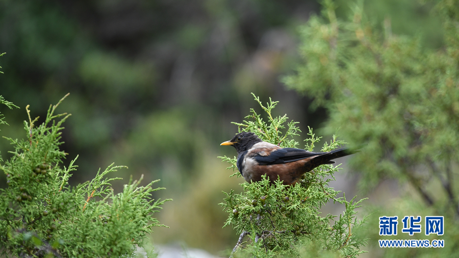 在青海省玉樹藏族自治州囊謙縣境內(nèi)拍攝到的棕背黑頭鶇。