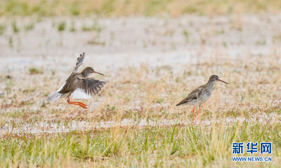 在青海省海西蒙古族藏族自治州烏蘭縣茶卡鹽湖拍攝到的紅腳鷸。