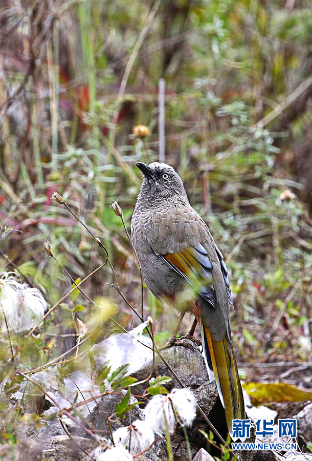 在青海省玉樹藏族自治州通天河畔勒巴溝拍攝到的橙翅噪鹛。