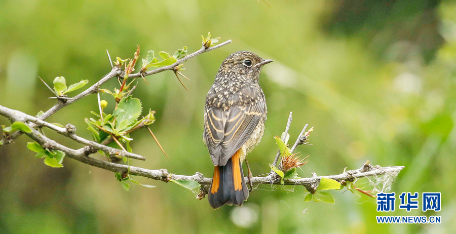 在青海省玉樹藏族自治州囊謙縣境內(nèi)拍攝到的白喉紅尾鴝(幼鳥)。