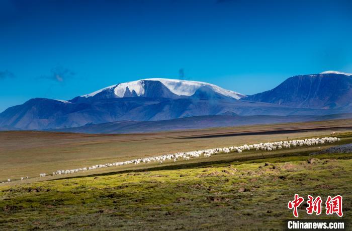 圖為天峻縣境內的草原和藍天、雪山相照映。天峻縣委宣傳部 供圖