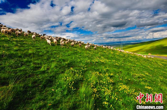 圖為天峻縣境內的草場上羊群在奔跑。天峻縣委宣傳部 供圖