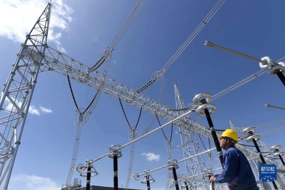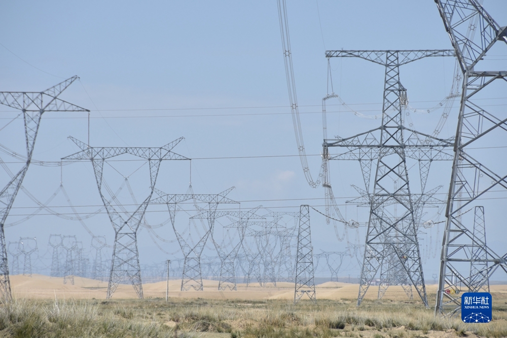 這是2021年9月1日拍攝的位于青海省海南藏族自治州共和縣的青豫特高壓輸電線(xiàn)路。新華社記者 解統(tǒng)強(qiáng) 攝