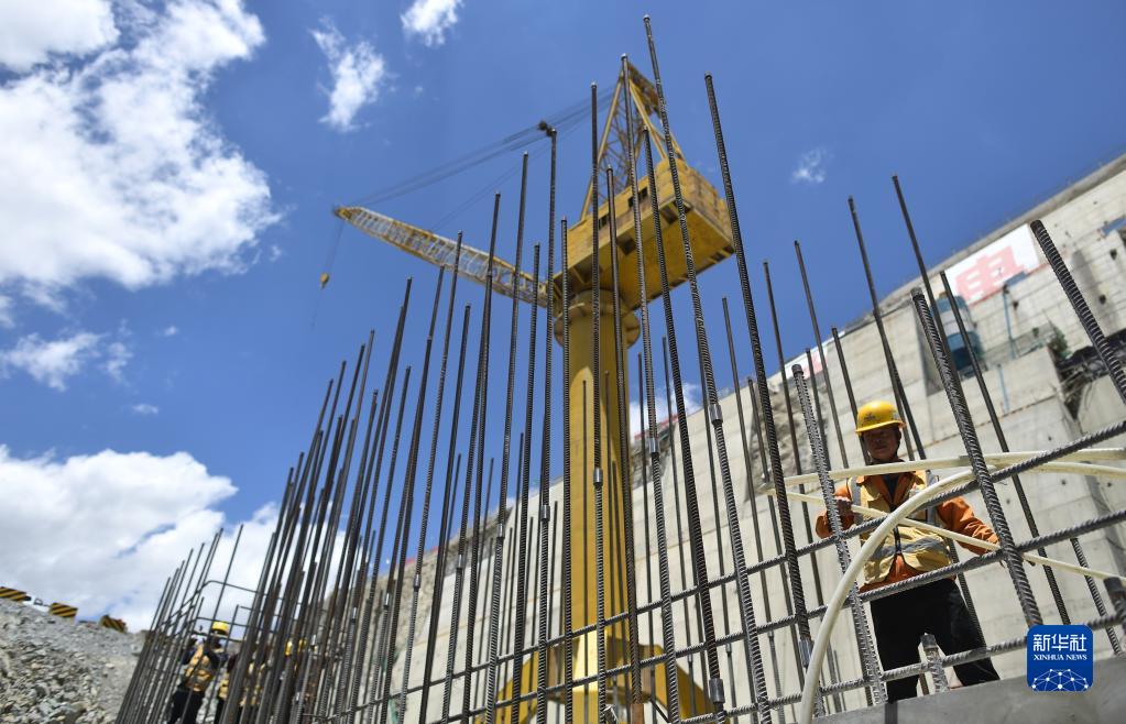 6月22日,施工人員在羊曲水電站施工現(xiàn)場作業(yè)。新華社記者 韓方方 攝