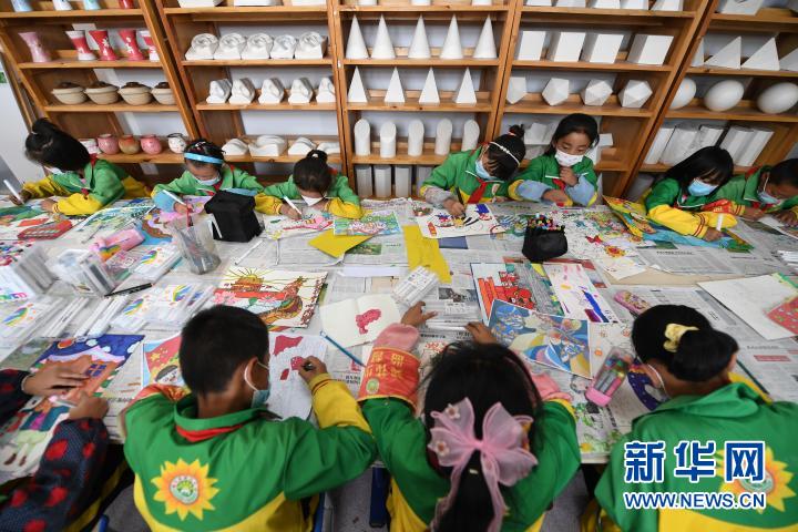 6月15日,在都蘭縣第三小學(xué),葵花繪夢(mèng)社團(tuán)在教室中畫(huà)畫(huà)。新華社記者 范培珅 攝