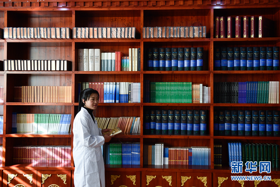 在果洛藏族自治州職業(yè)技術(shù)學(xué)校,2020級(jí)藏醫(yī)醫(yī)療與藏藥專(zhuān)業(yè)學(xué)生德吉在借閱書(shū)籍。(資料圖)新華社記者 張龍 攝