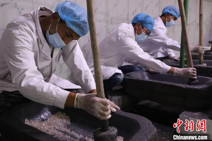 圖為工作人員加工中藏藥。馬文莉 攝