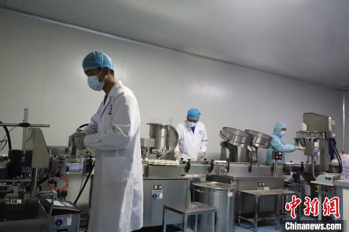 圖為工作人員利用先進(jìn)設(shè)備加工中藏藥。馬文莉 攝