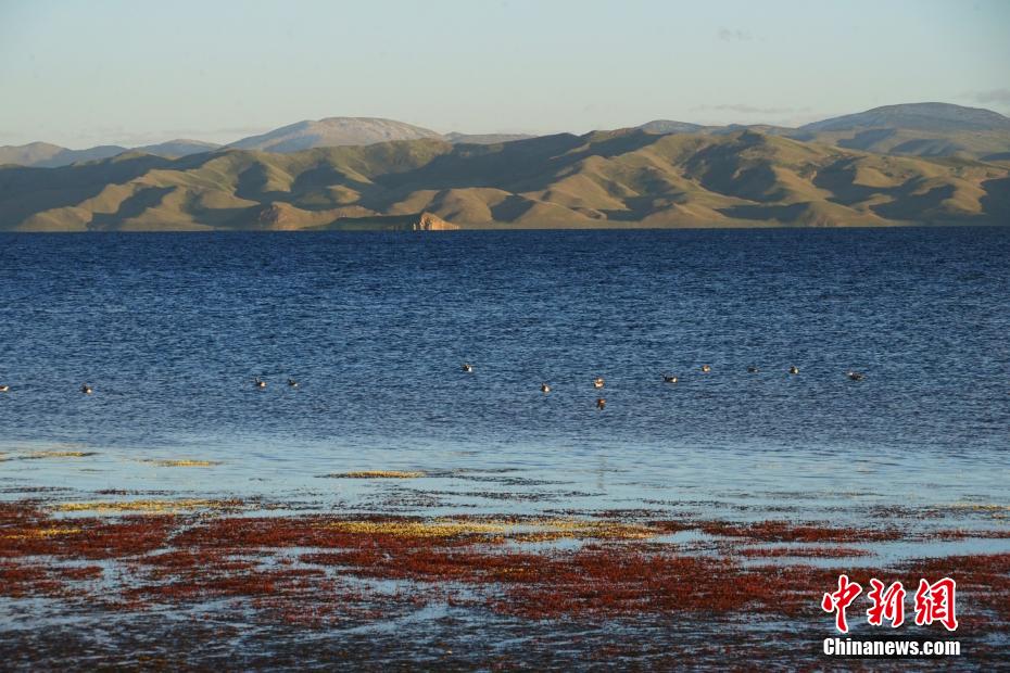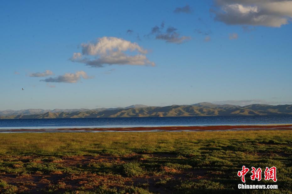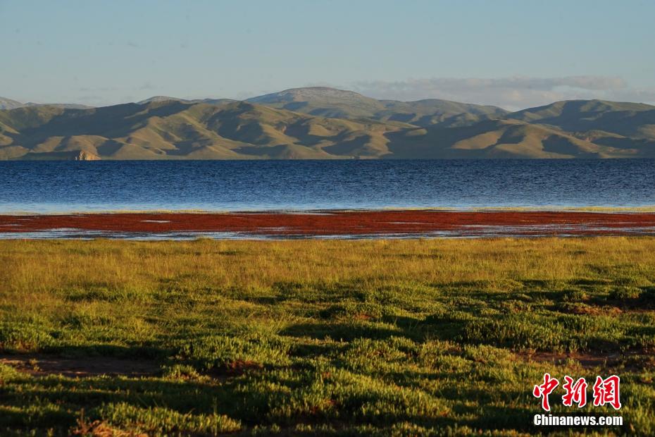 冬格措納湖位于青海省果洛藏族自治州瑪多縣,是一片地處海拔4100多米的淡水湖。夏日的冬格措納湖,湖水湛藍,宛如跌落群山之中的“藍寶石”。紅、黃、綠色的草灘與湖水相互映襯,美景如畫。圖為冬格措納湖美景如畫。 馬銘言 攝