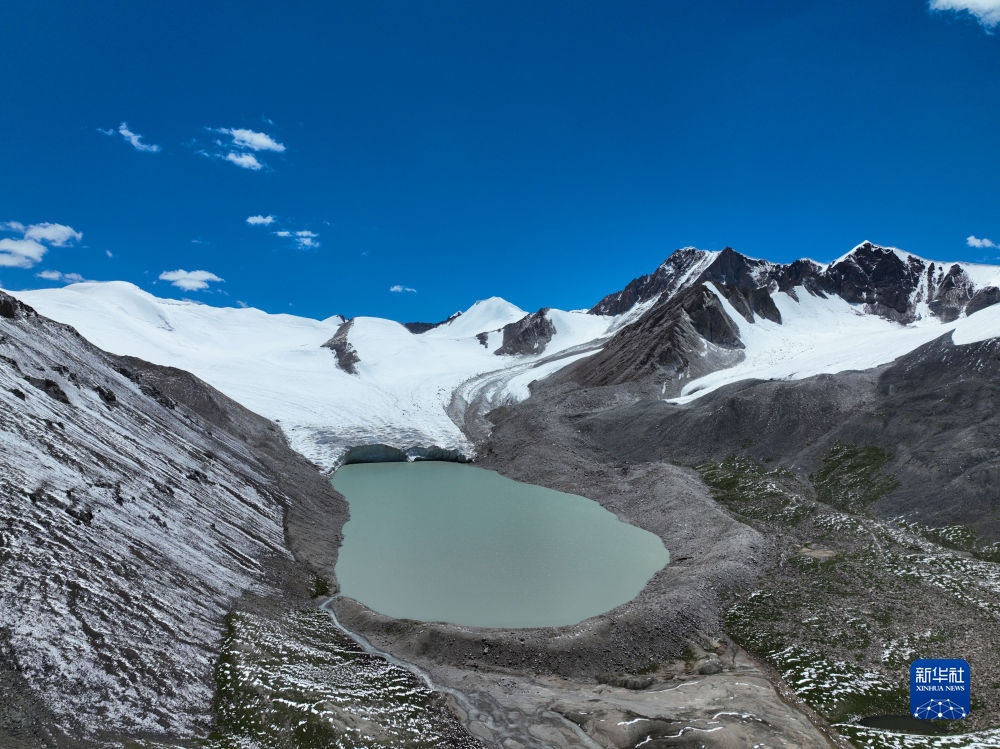 這是7月21日在長(zhǎng)江源地區(qū)拍攝的冰川與湖泊(無人機(jī)照片)。新華社記者 張龍 攝