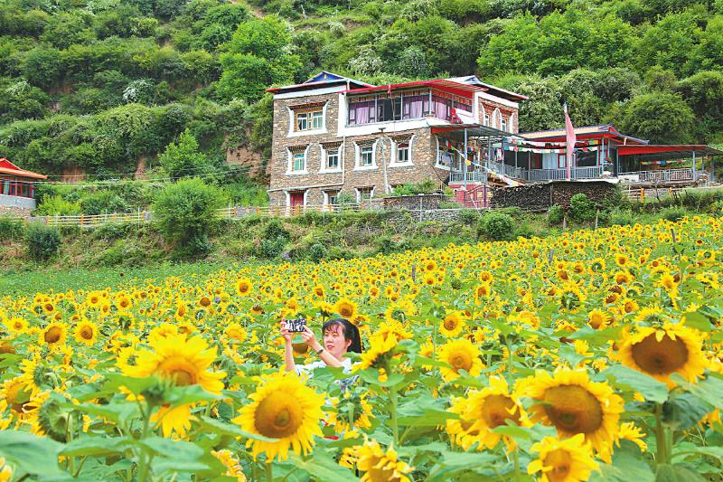 “現(xiàn)在是向日葵的盛花期,今天又是周末,來的游客比較多。”洛威村黨支部書記澤郎東周說,因?yàn)榭少p花、可納涼,7月前來洛威村休閑娛樂的游客已經(jīng)超2萬人次,村內(nèi)的“云壑樂園”農(nóng)家樂開業(yè)10來天便收入約20萬元。
