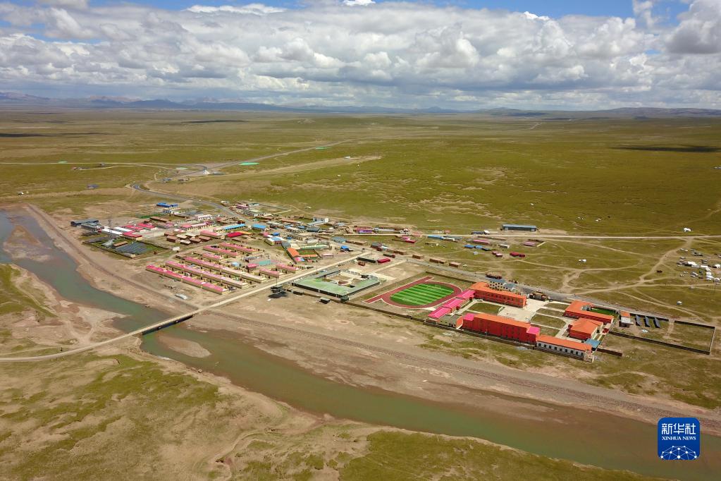 這是8月11日拍攝的治多縣索加鄉(xiāng)衛(wèi)生院所在的索加鄉(xiāng)街道全貌(無(wú)人機(jī)照片)。新華社記者 范培珅 攝