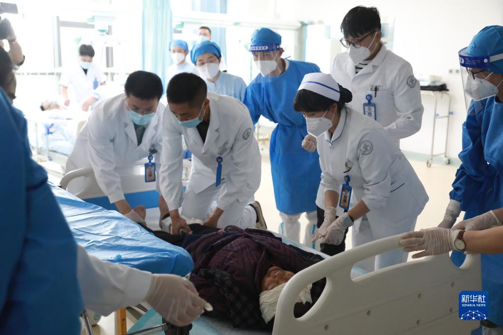 9月6日,西部戰(zhàn)區(qū)總醫(yī)院收治從瀘定縣轉(zhuǎn)運(yùn)來的傷員。新華社發(fā)(韋世銘 攝)