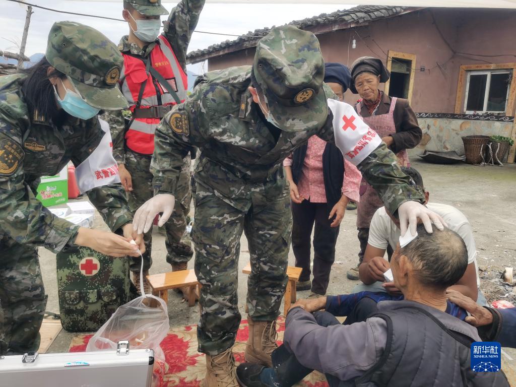 9月6日,武警四川總隊(duì)醫(yī)院醫(yī)療隊(duì)在瀘定縣磨西鎮(zhèn)救治傷員。新華社發(fā)(李華時(shí) 攝)