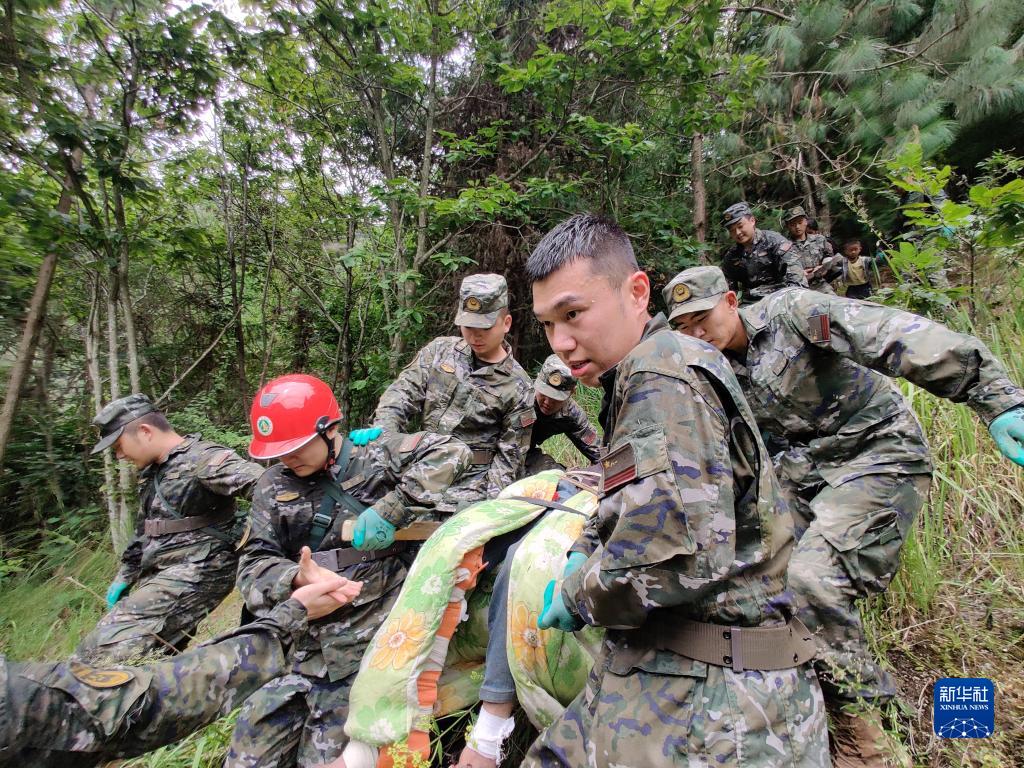 9月6日,武警四川總隊(duì)雅安支隊(duì)官兵在雅安市石棉縣王崗坪鄉(xiāng)轉(zhuǎn)移受傷人員。新華社發(fā)(李熠 攝)