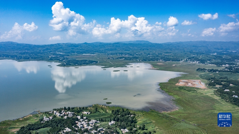 貴州草海國家級自然保護區(qū),退耕還湖成效明晰可見(2022年7月8日攝,無人機照片)。新華社記者 陶亮 攝