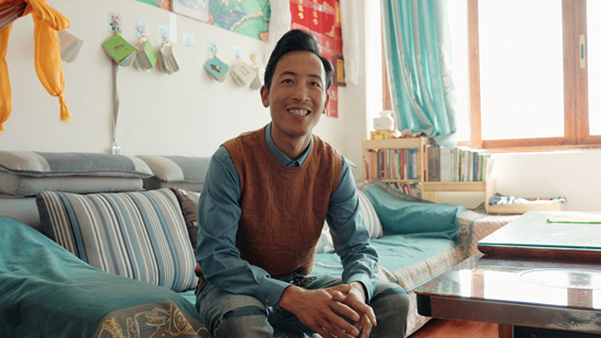 交情樓,是交通銀行為解決三完小教師住宿需求,投資400萬元修建的1棟24套教師宿舍。在澤仁彭措的家里,記者看到,兩室一廳干凈整潔,家具家電一應(yīng)俱全,拉開客廳的窗簾,天空之城的意境便呈現(xiàn)在眼前。
