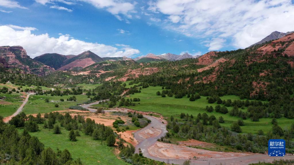 這是在青海省玉樹藏族自治州雜多縣境內(nèi)拍攝的昂賽大峽谷一角(6月29日攝,無人機(jī)照片)。新華社記者 張宏祥 攝
