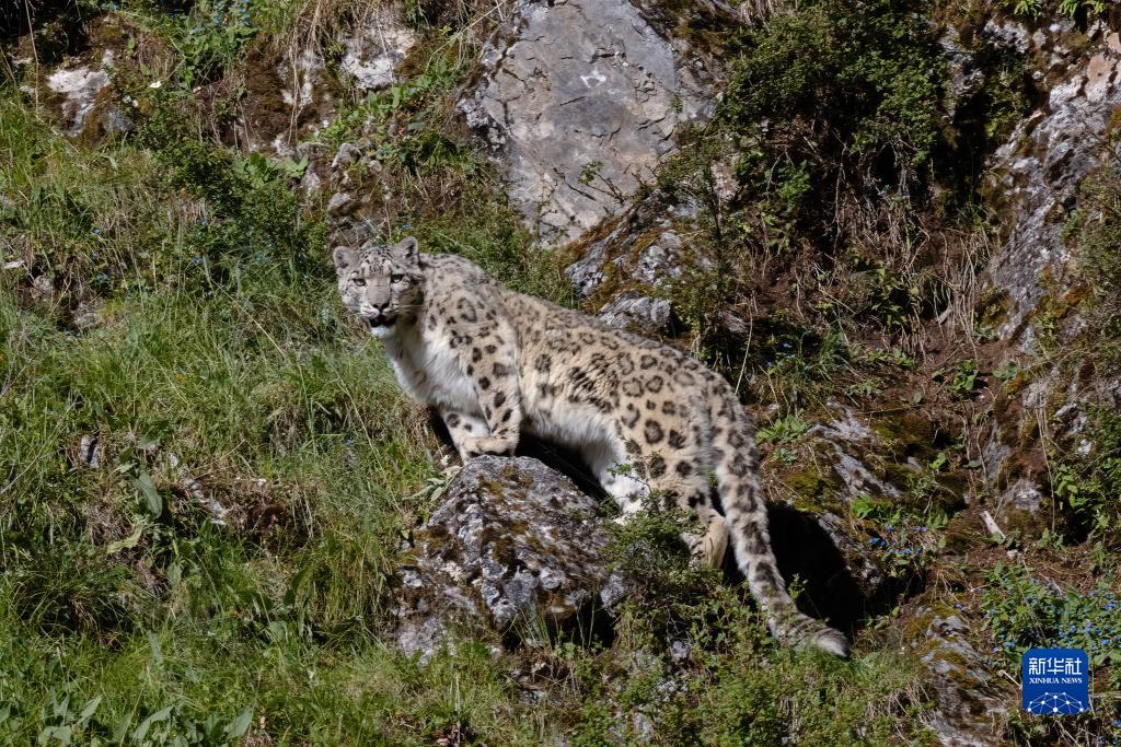 這是在青海省玉樹藏族自治州雜多縣境內(nèi)的昂賽大峽谷拍攝的雪豹(8月6日攝)。新華社發(fā)(姚牧陽(yáng) 攝)
