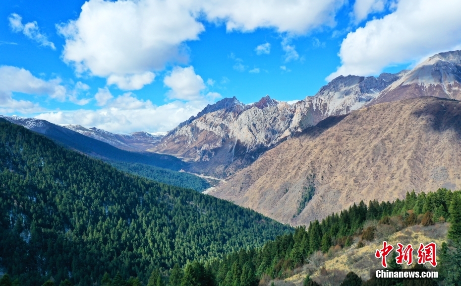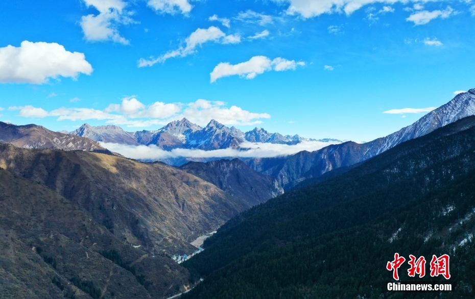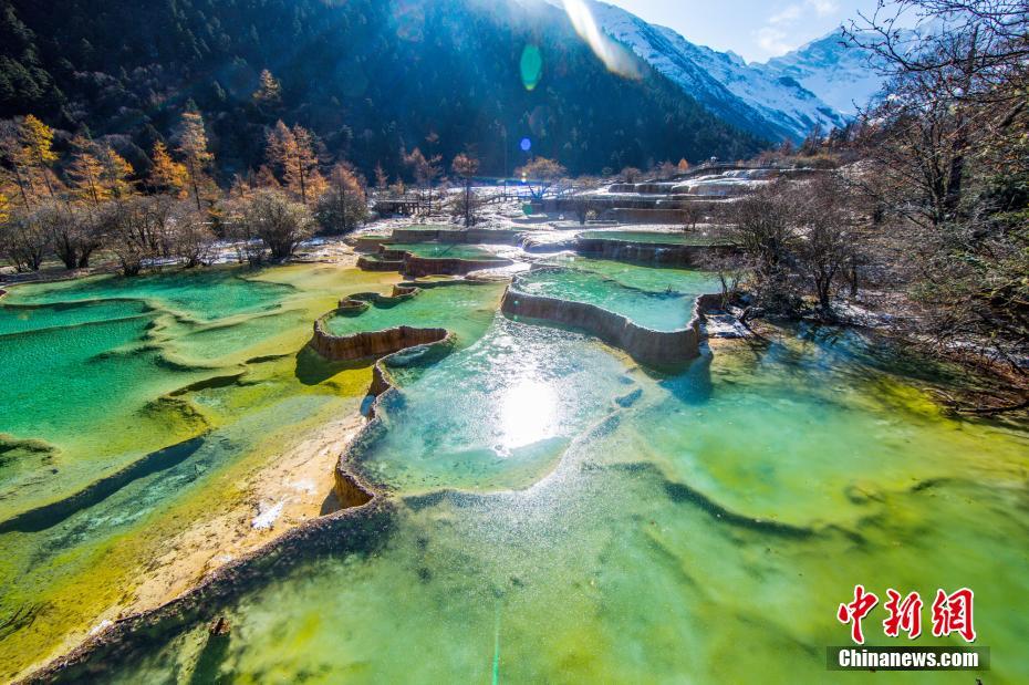 11月18日,航拍四川省阿壩藏族羌族自治州松潘縣黃龍景區(qū)風(fēng)光。(無人機照片) 中新社記者 安源 攝