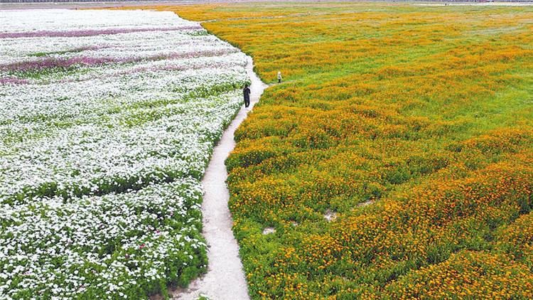圖為青海省海西蒙古族藏族自治州德令哈市一望無際的原野花海 圖片來源:青海日報 攝影:蘇烽