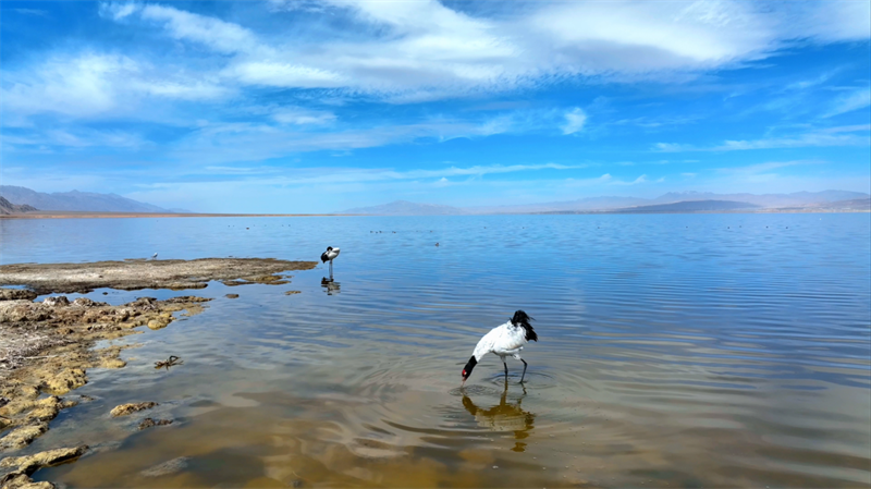 黑頸鶴群現(xiàn)身柴達(dá)木盆地都蘭湖國(guó)家濕地公園