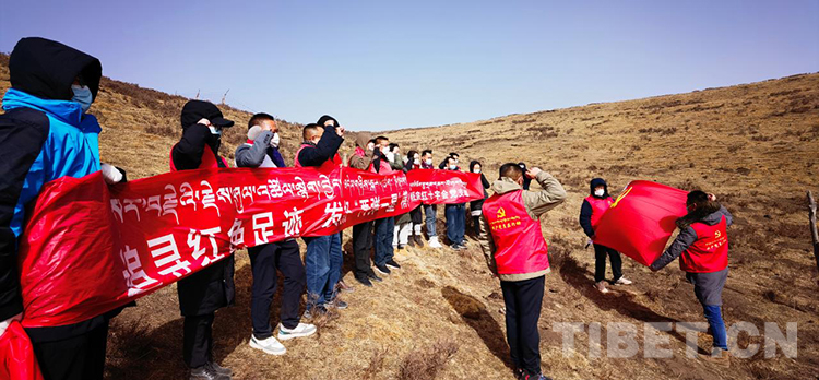 圖為青海省海北州民宗委黨員赴海晏縣同寶山開展“追尋紅色足跡·弘揚兩彈一星精神”主題黨日活動(青海省海北州民宗委供圖)