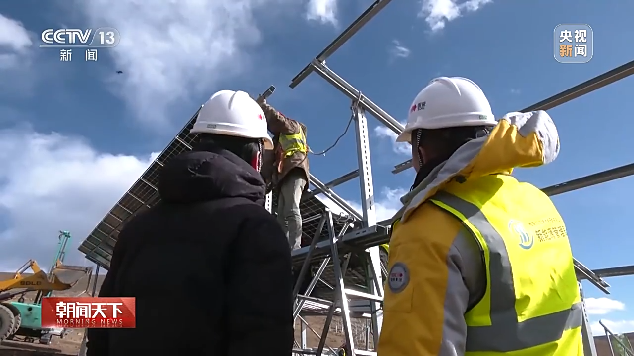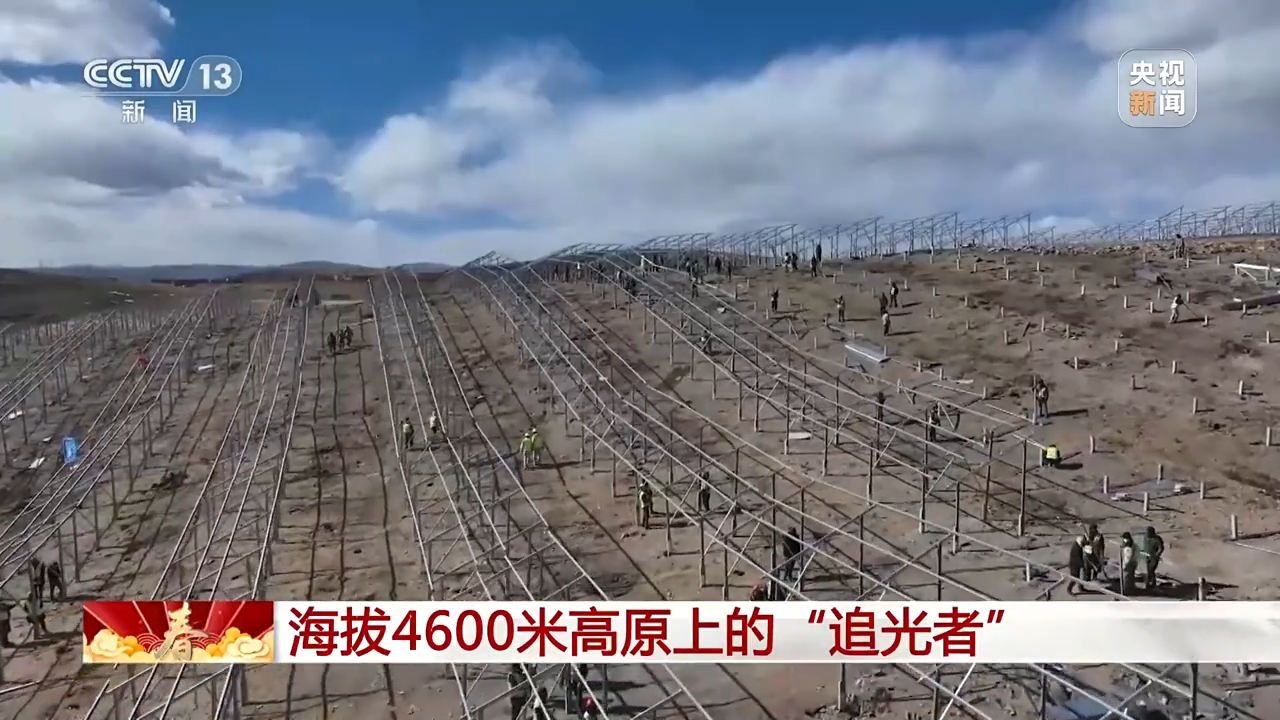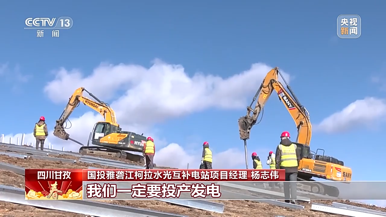 總臺央視記者 古峻嶺:在海拔4600米的柯拉水電光伏互補(bǔ)電站,1000多名建設(shè)者正在加緊施工,他們要在春節(jié)期間把53萬根光伏基礎(chǔ)樁全部施工完成。