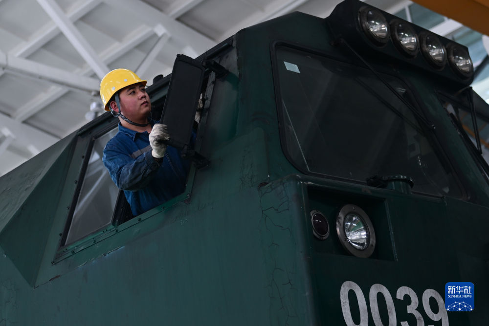 2月4日,在格爾木機(jī)務(wù)段檢修車間,馬國仁在駕駛室檢查。新華社記者 張龍 攝