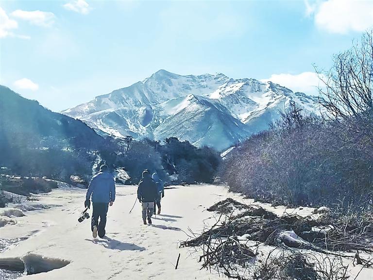 環(huán)保協(xié)會(huì)成員徒步開(kāi)展戶外調(diào)查。 圖片由瑪曲縣生態(tài)環(huán)境保護(hù)協(xié)會(huì)提供