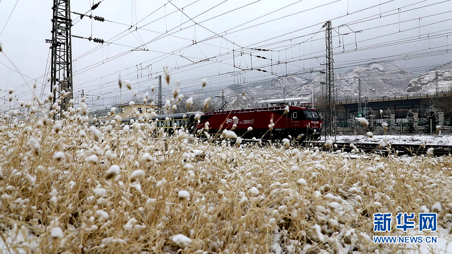 在雪中行駛的列車。新華網發(fā)(馬建林 攝)