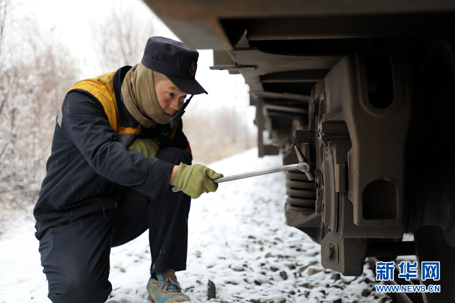列檢人員對貨運列車進行檢查。新華網 馬建林 攝